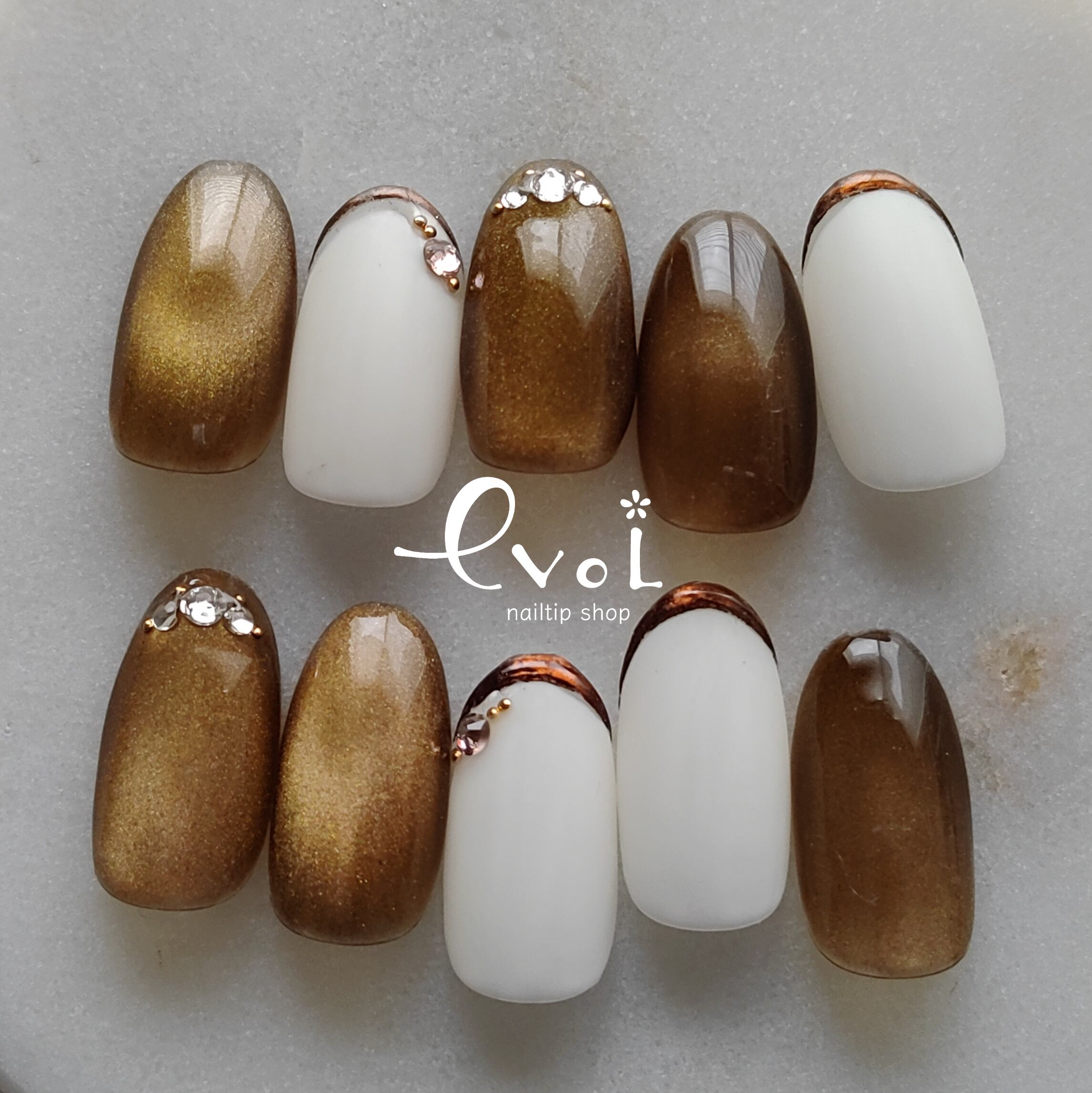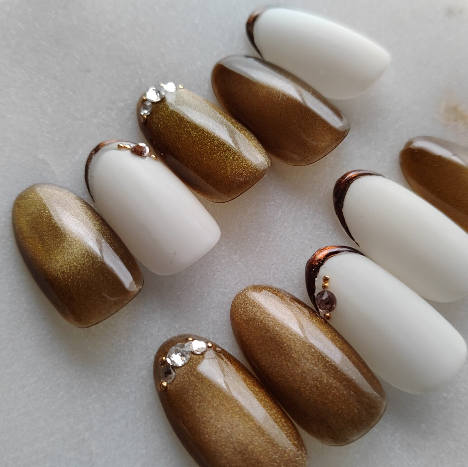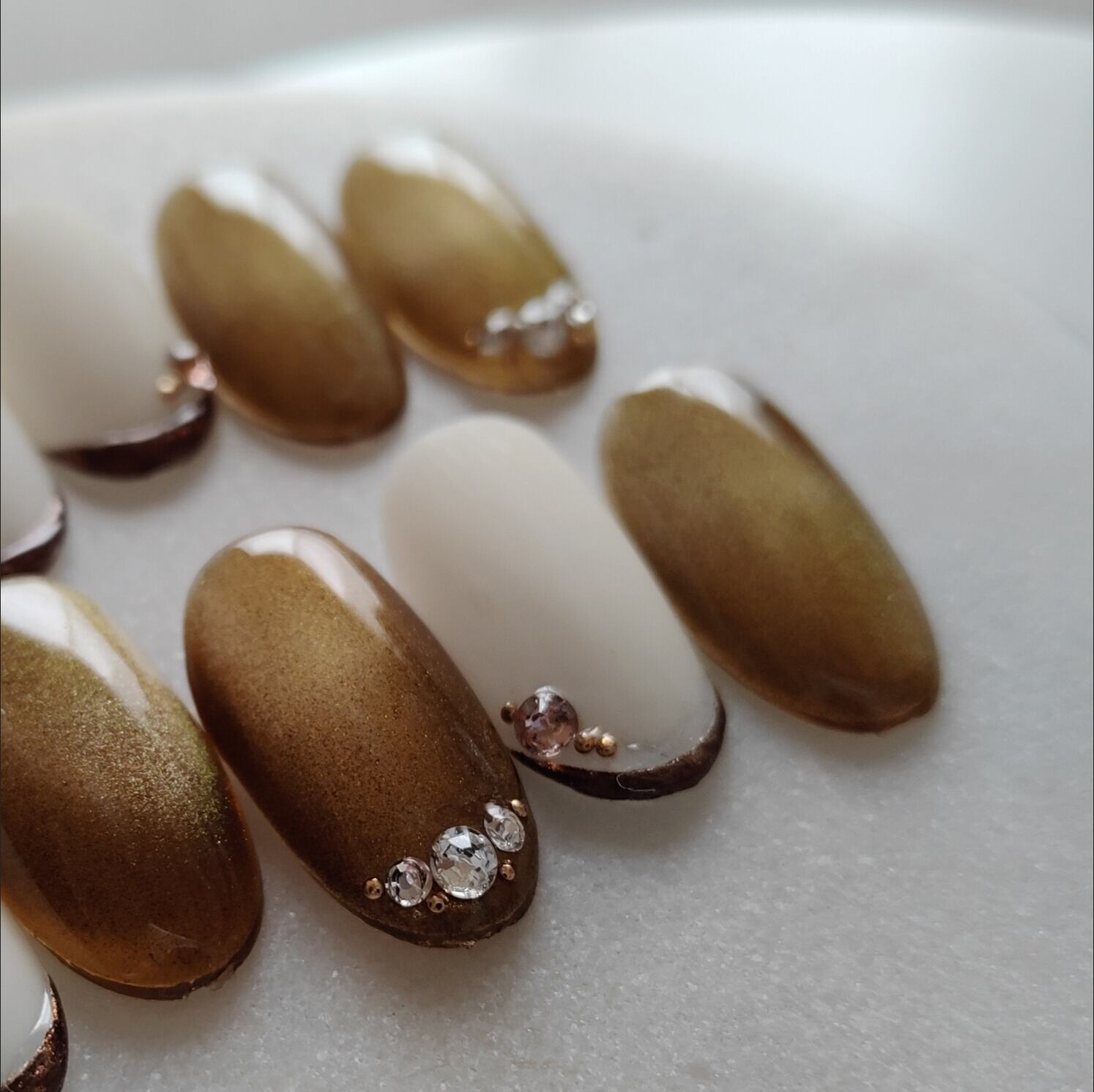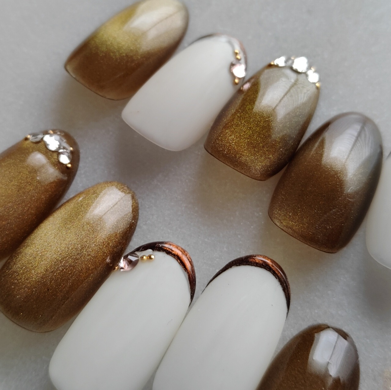 くすみイエローのベースカラーにブロンズゴールド×ブラウンのマグネット