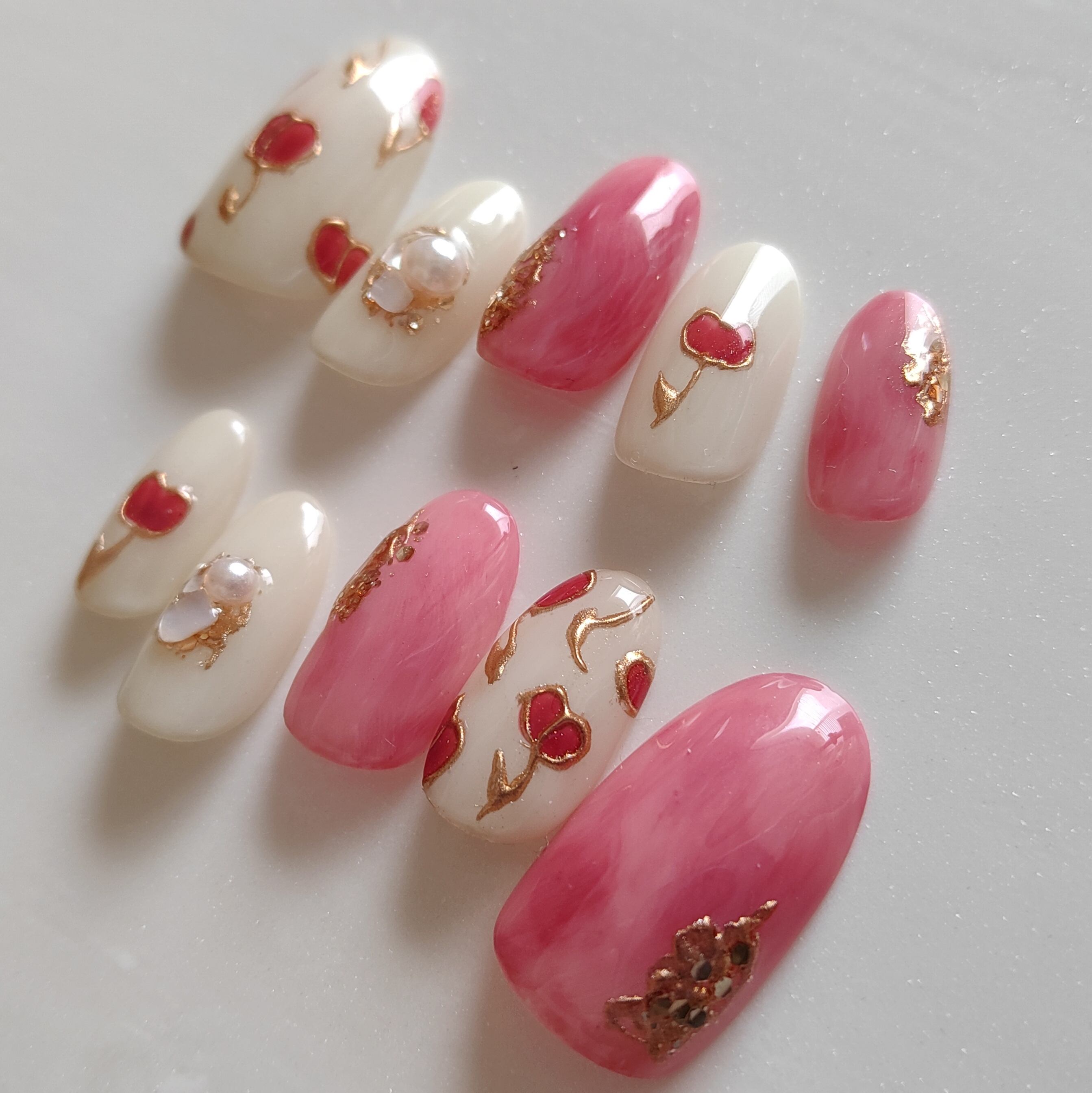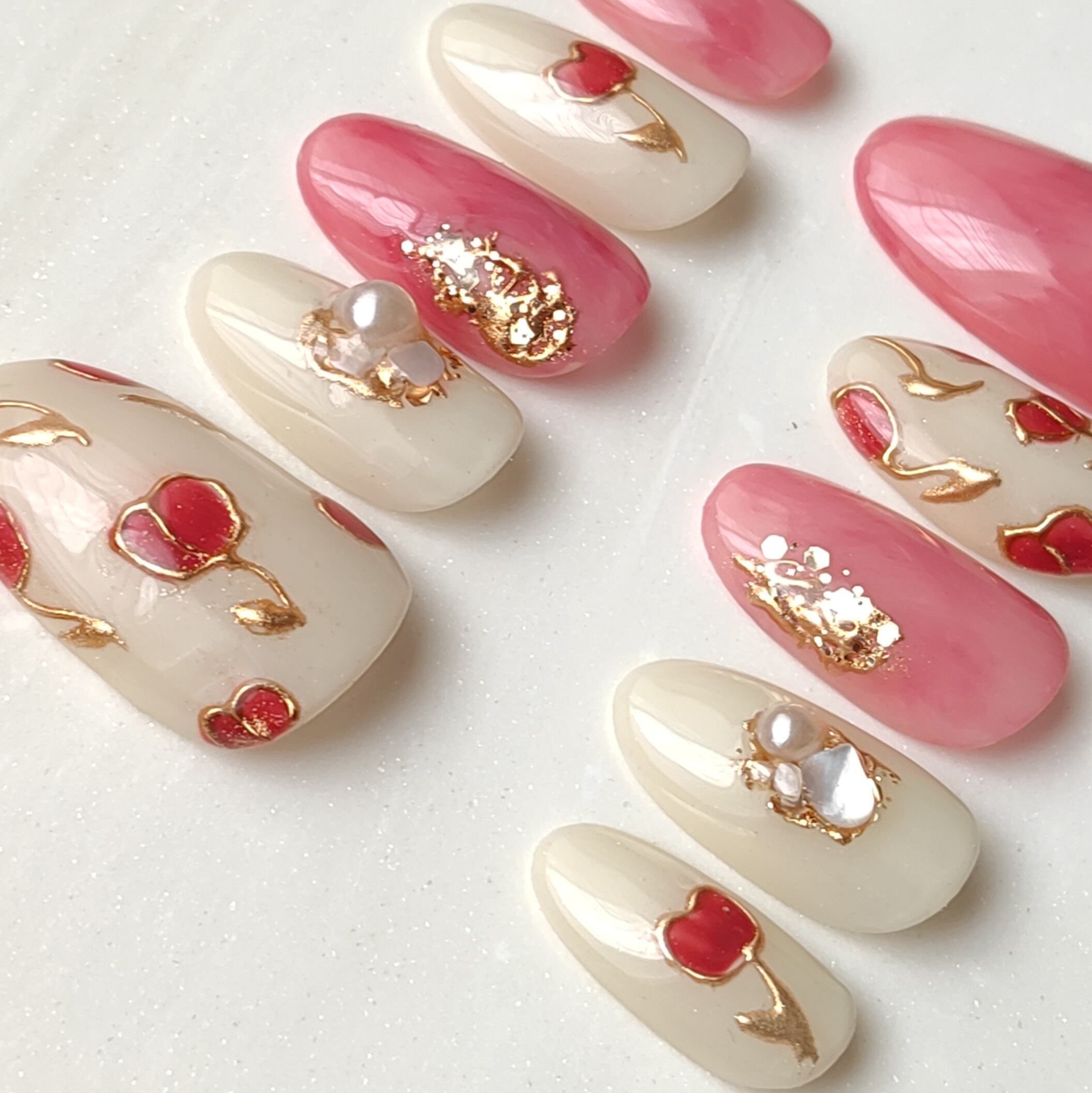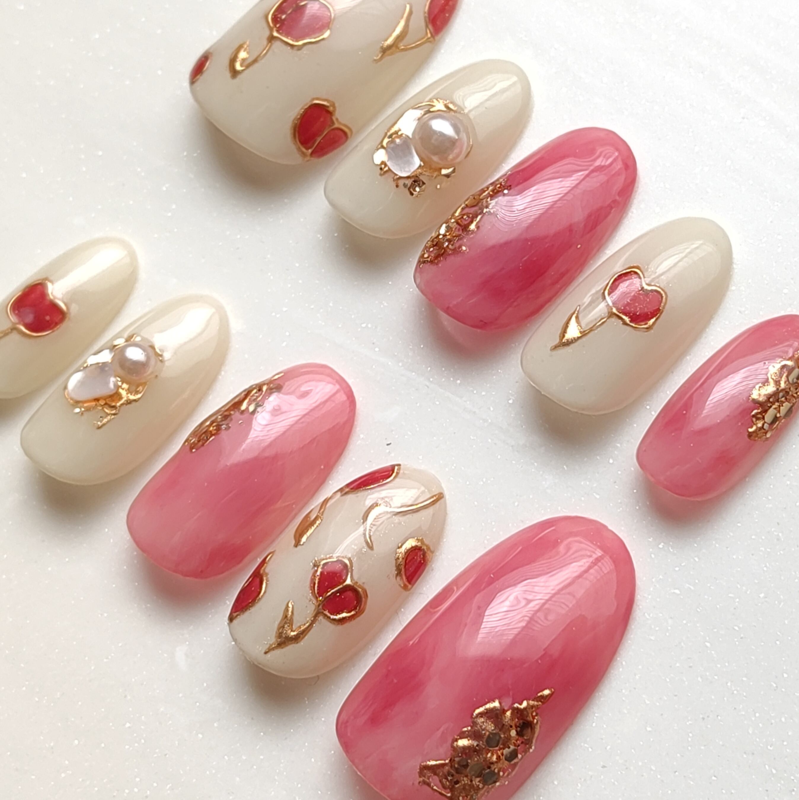 可愛らしさもあるデザインなのでデートや特別な日のオシャレ、指先を華やかに彩りたい方にもオススメです。